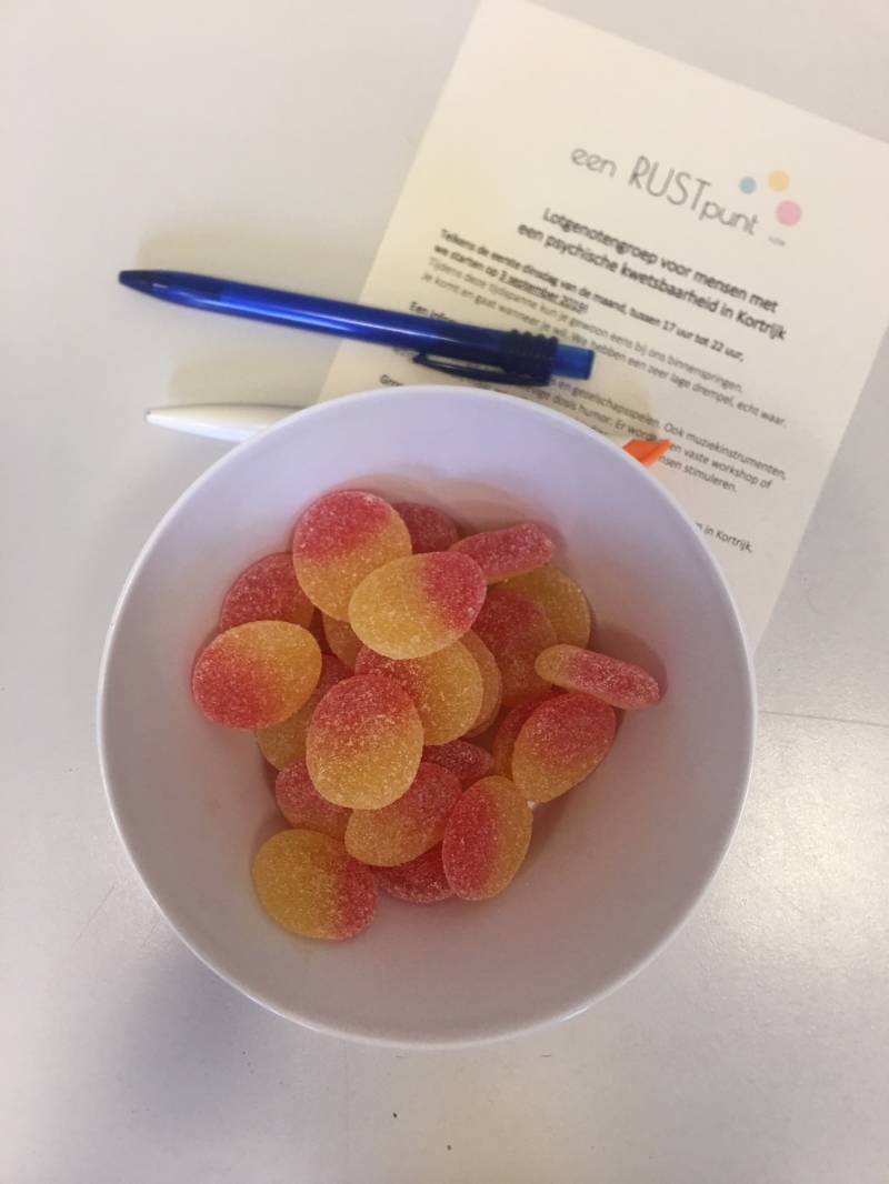 Tja, als social media manager ben ik diegene die gelijk ne freak foto's trok! Aan de ingang hangt zo'n infoscherm: we stonden er wel op zeker, OEF. 't Was voor echt plots, maar normaal gezien waren we toch wel goed voorbereid. Eigenlijk wilden we gewoon waar we met ons drietjes reeds nood aan hadden: af en toe samenkomen, ne kaffie drinken, zagen over de slechte nachtrust, lachen met onze depressieve al dan niet manische periodes, enz. - dat wilden we gewoon uitbreiden. De kans bieden aan anderen die dit ook wel af en toe kunnen 'gebruiken'. Zoiets van: "hé, we kunnen eerst iets gaan eten en dan samen nog eentje drinken in een Rustpunt? Waahja, goe idee!"