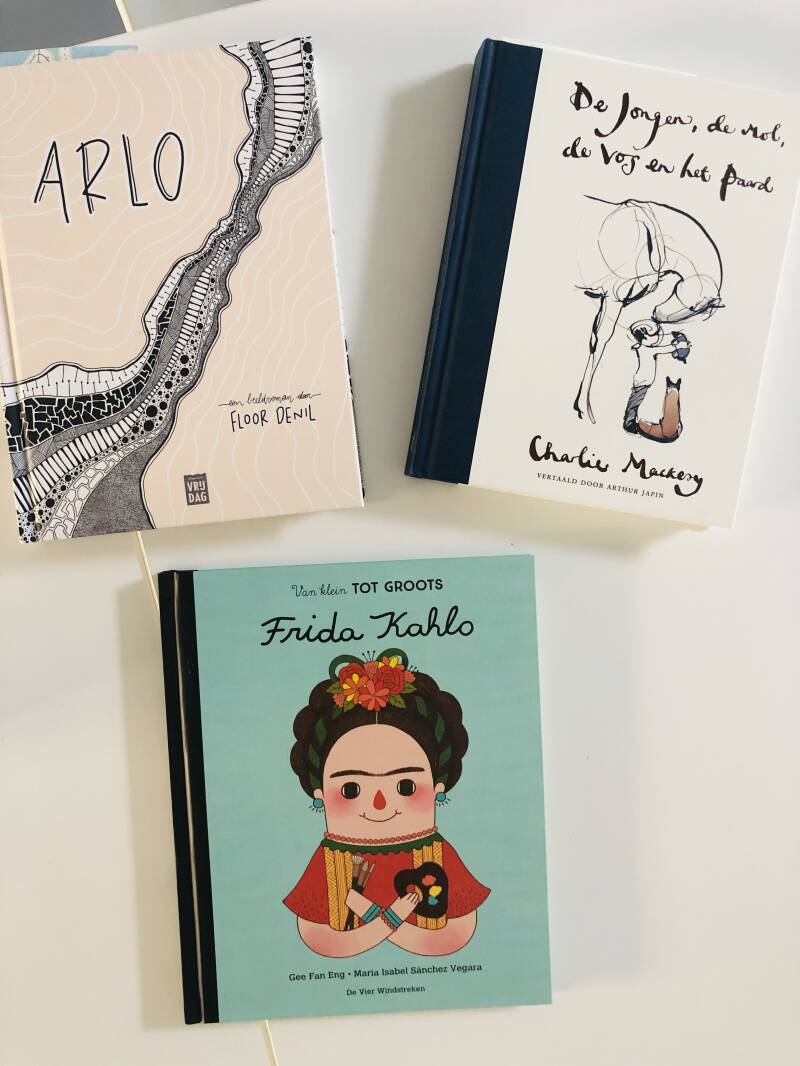 Over de beeldroman 'Arlo' had ik het al eens hé. Als ik veel verwacht van een boek, dan heb ik de neiging om het uit te stellen om te lezen. Zodus ligt dat boek al weken te wachten op mij :). Ik heb er al veel in gebladerd, dat wel! Het boek er naast is ondertussen ook al erg gekend denk ik: 'De jongen, de mol, de vos en het paard'. Dit boek van Charlie Mackesy schijnt een moderne fabel te zijn voor jong en oud. Honderd illustraties en poëtische teksten vertellen het verhaal van een bijzondere vriendschap, tussen de jongen en de drie dieren. Toen Fie hier weer eens zonder boeken zat, gaf ik dit mee en na twee avonden kreeg ik het terug (met maar één ezelsoor haha): 'Uitgelezen! Wat een mooi boek! Het is alsof je er kan blijven over nadenken...' Ik was lik preus op haar!